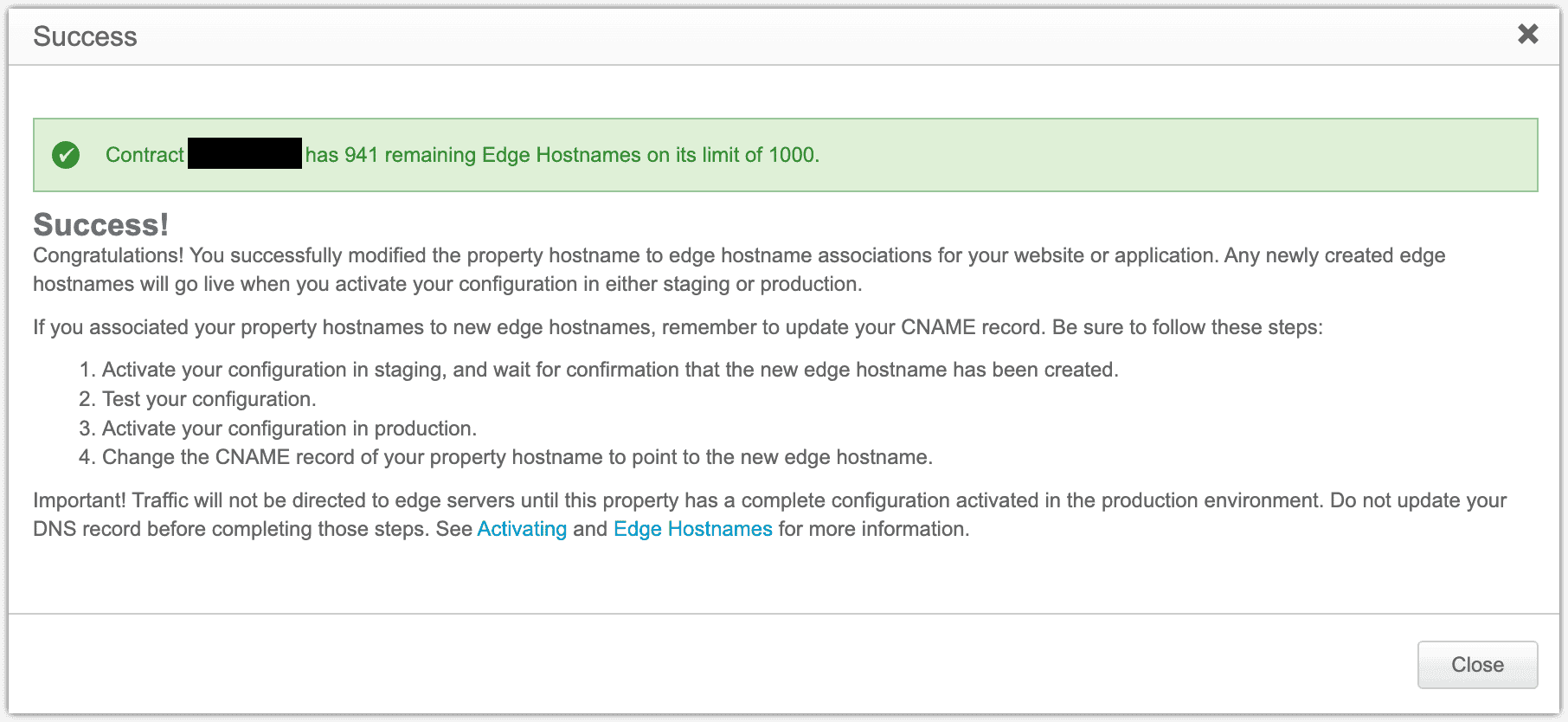 Before your changes are available on Akamai, you must activate your property. You can activate on either the staging or production environment by entering the appropriate command: